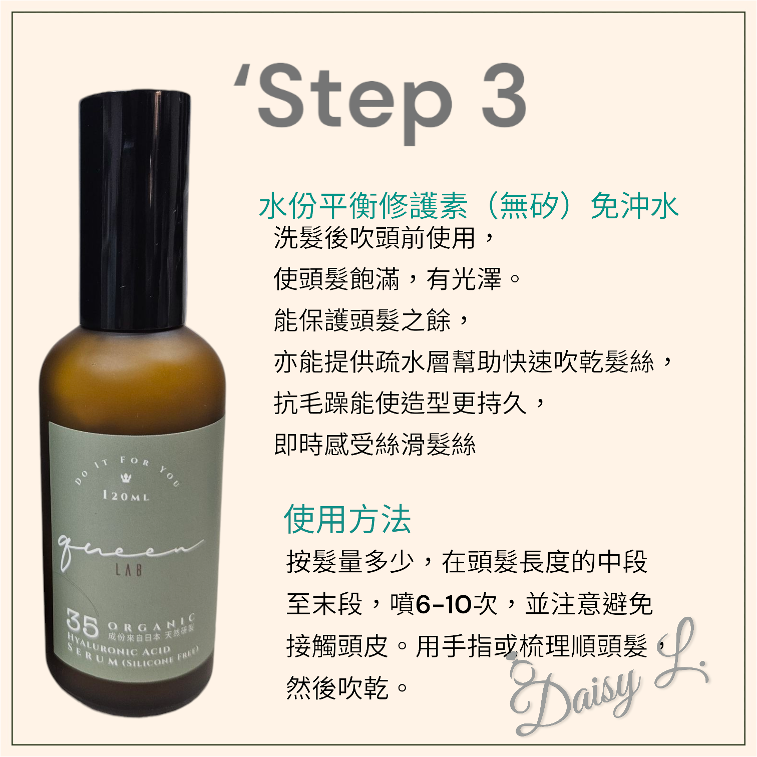 Daisy大推,用後堅有感‼️Queen Lab 天然有機洗護髮組合 (洗頭水 500ml + 護髮素 300ml + 精華液 120ml)