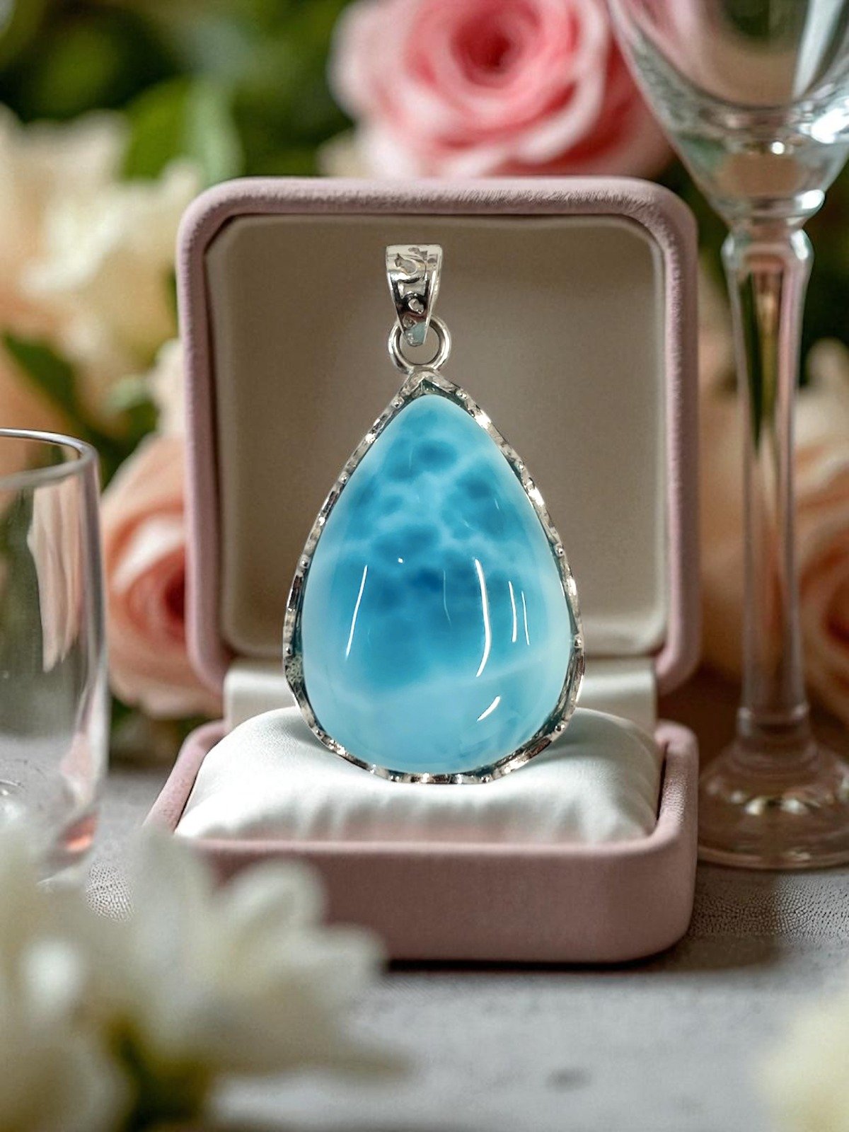 天然海紋石水滴形吊墜