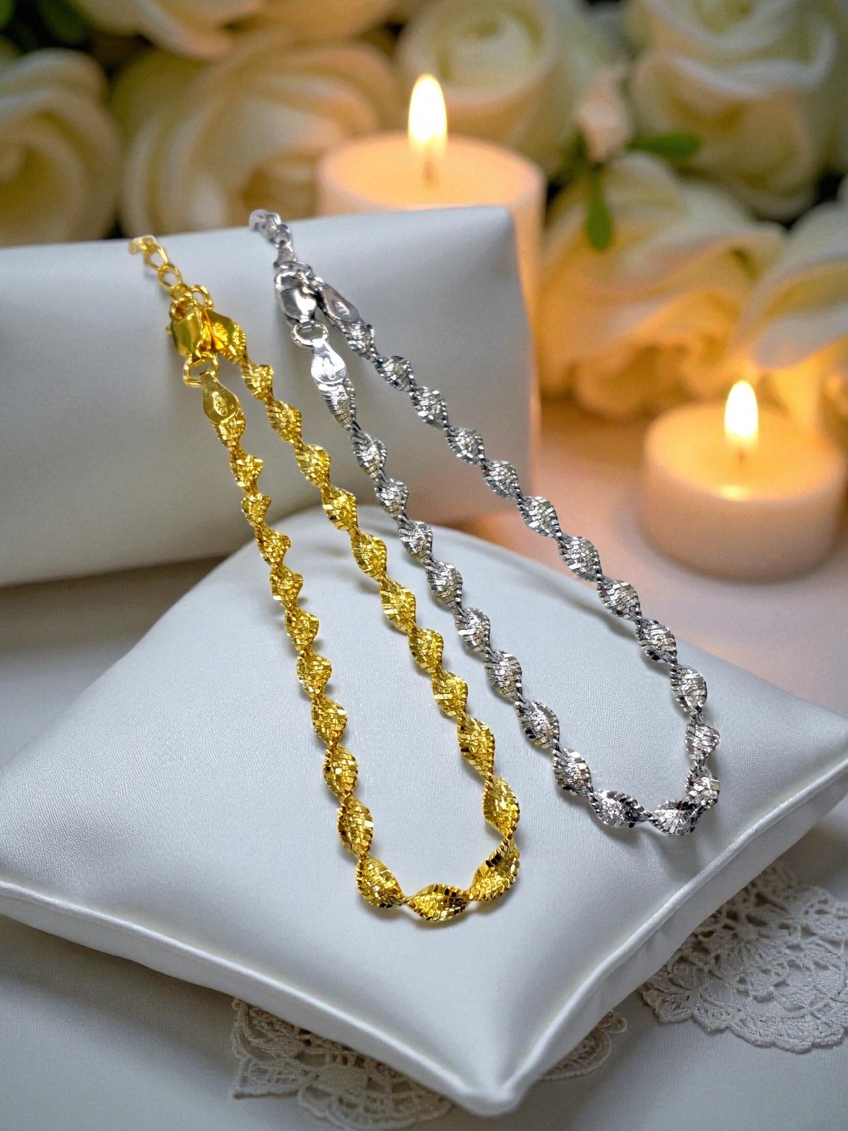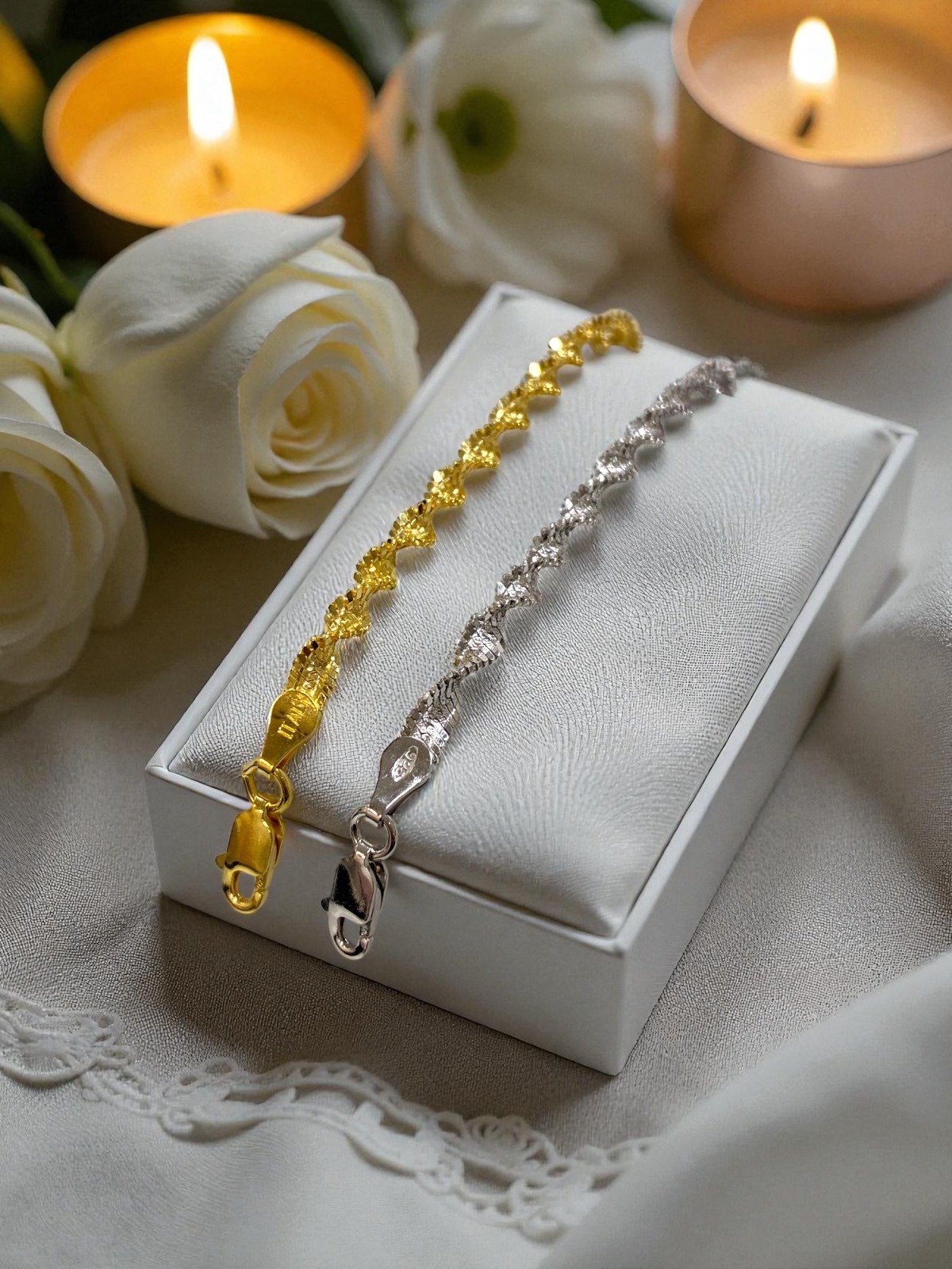 尺寸: 16+3 cm 顏色: 金色 / 銀色 這款精緻的扭紋手鍊,為您的造型增添一抹優雅的光彩。手鍊採用獨特的扭紋設計,在光線下閃耀動人,無論是日常穿搭還是特殊場合,都能展現您的個人魅力。散發著溫暖的光澤,鍍銀款則呈現出冷豔的氣質。手鍊配有可調節的延長鏈,確保佩戴舒適,適合各種手腕尺寸。這款手鍊不僅僅是一件飾品,更是一種生活態度的體現,適合追求精緻、注重細節的您。無論是送給自己,還是作為禮物送給親朋好友,都是一份充滿心意的選擇。 主要特點: * 獨特的扭紋設計,時尚百搭 * 兩種顏色選擇,滿足不同風格 * 可調節延長鏈,佩戴舒適 * 精緻工藝,品質保證 * 適合日常穿搭和特殊場合 * 是送禮的理想選擇 這款手鍊適合所有追求時尚、注重細節的女性。無論您是喜歡簡約風格,還是偏愛華麗風格,都能在這款手鍊中找到屬於自己的魅力。它不僅能提升您的整體造型,更能展現您的獨特品味。立即選購,讓這款精緻的扭紋手鍊為您的生活增添更多光彩!