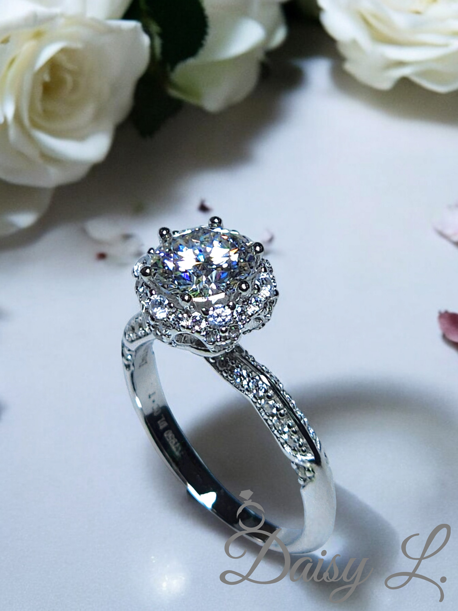 💎圈口港碼訂製,下單後兩星期內到貨✨ Daisy極力推介大家試試畢業級莫桑石戒指原因 🔸D colour 極白極淨莫桑石 🔸精細切工,折射下比大部分寶石更高、更閃 🔸莫桑石硬度高,戴久了也不會像鋯石矇矇的 🔸18k厚電鍍,實測戴1-2年,經常碰水也完全沒掉色 🔸戒指上的小碎石是高炭鑽,閃爍度亦可媲美鑽石和莫桑石 這款令人驚嘆的鑽石戒指,以其華麗的設計和精湛的工藝,定能成為您永恆的珍藏。主石採用圓形明亮式切割,閃耀著璀璨的光芒,周圍環繞著一圈精緻的鑲嵌小鑽,更添華麗氣息。戒環設計獨特,線條流暢,鑲嵌著細密的鑽石,與主石相得益彰。整體設計優雅而大氣,適合追求高貴品質和獨特風格的女性。無論是作為訂婚戒指還是結婚戒指,都能完美詮釋您的愛情故事。 產品特點: * 圓形明亮式切割主鑽,璀璨奪目 * 精緻的鑲嵌小鑽,更添華麗 * 獨特戒環設計,線條流暢 * 採用高品質材料,經久耐用 * 適合各種場合佩戴,展現您的優雅氣質 目標顧客: 此款戒指適合追求高貴品質、獨特風格、且注重細節的女性。它不僅是一件精美的飾品,更是一份珍貴的禮物,象徵著永恆的愛情和承諾。 保養建議: 為保持戒指的光澤和亮度,建議定期清潔保養。如有需要可加英國皇室御用抹銀布及洗銀水,店本有售。另外,請避免與化學物品接觸,以防損壞。